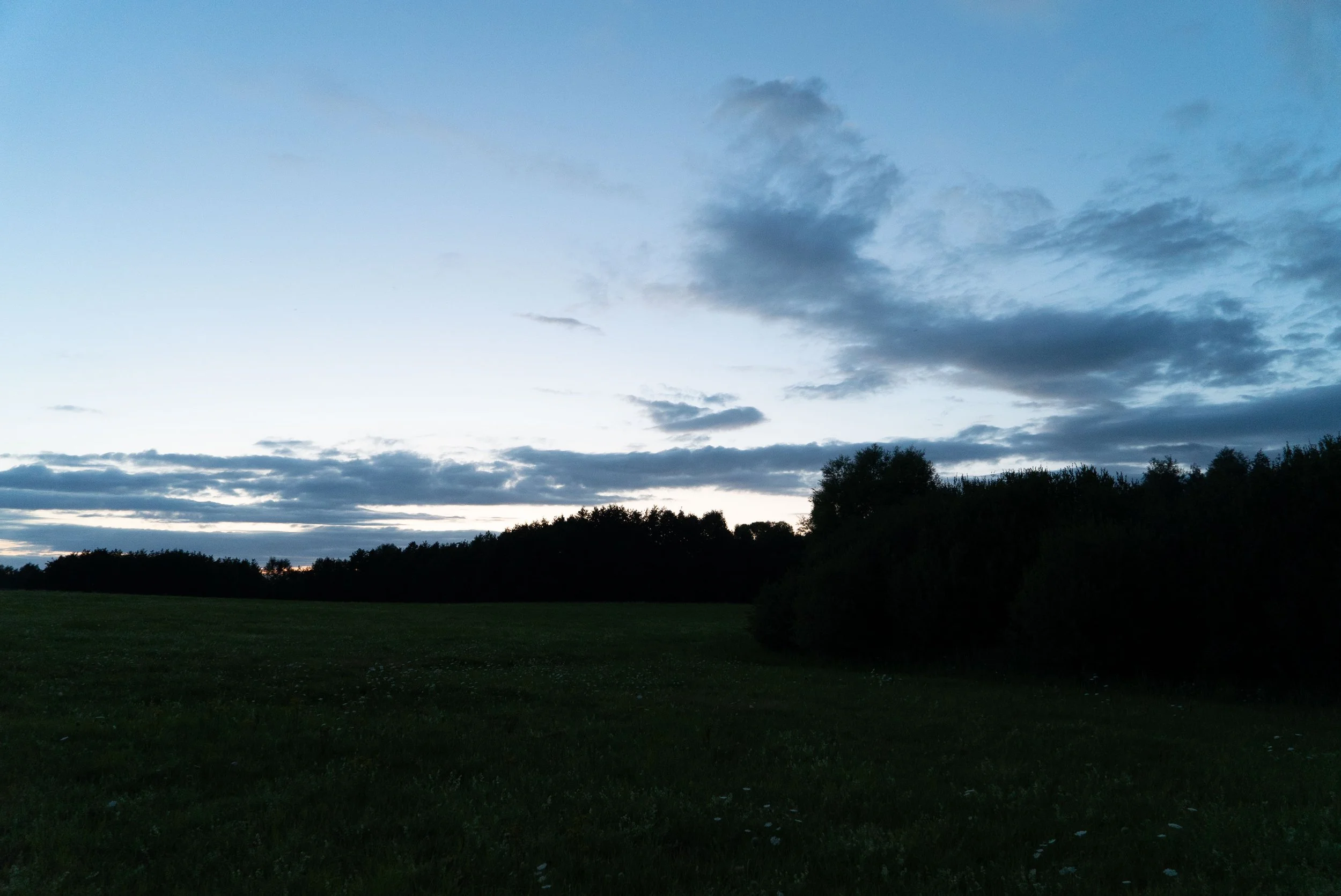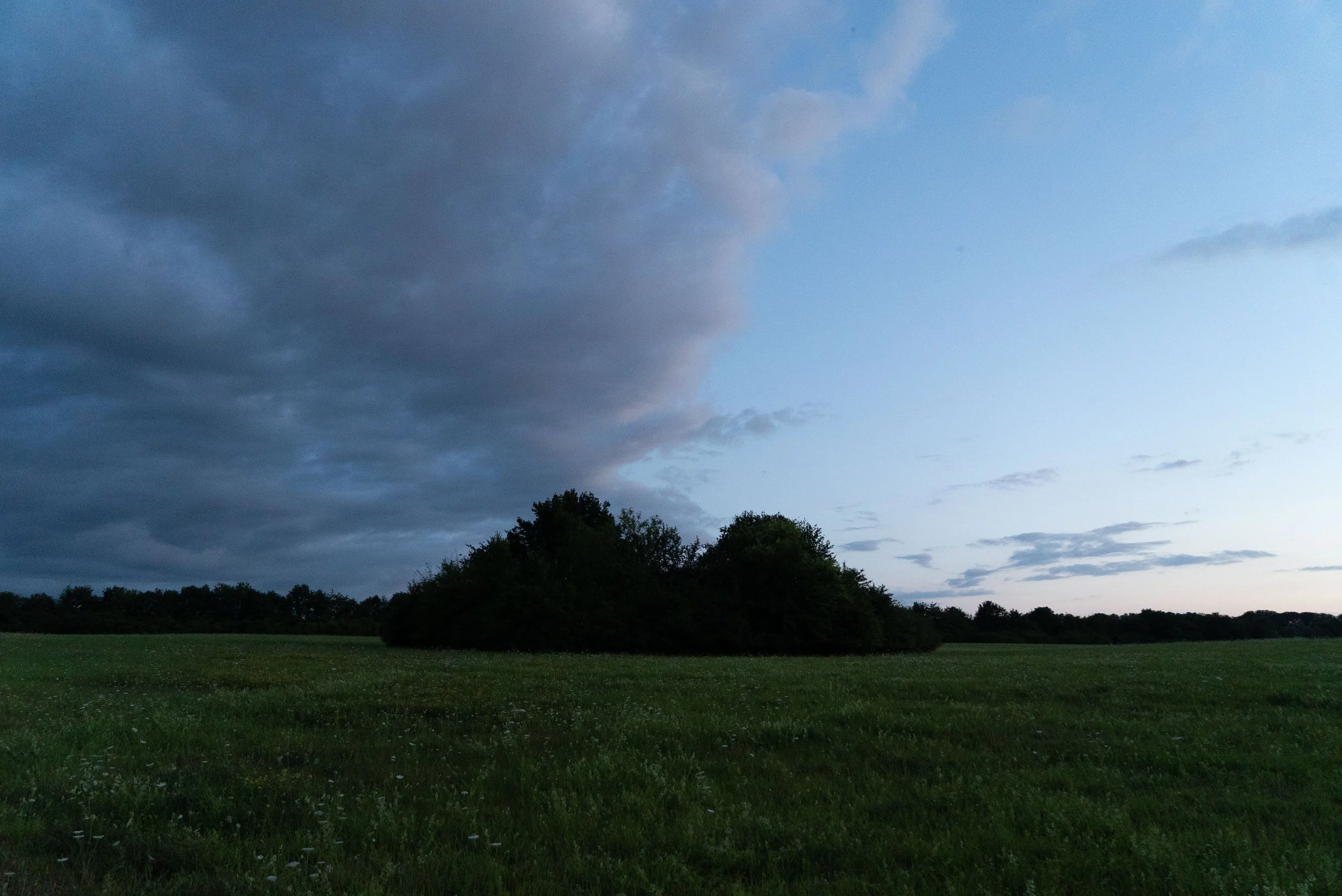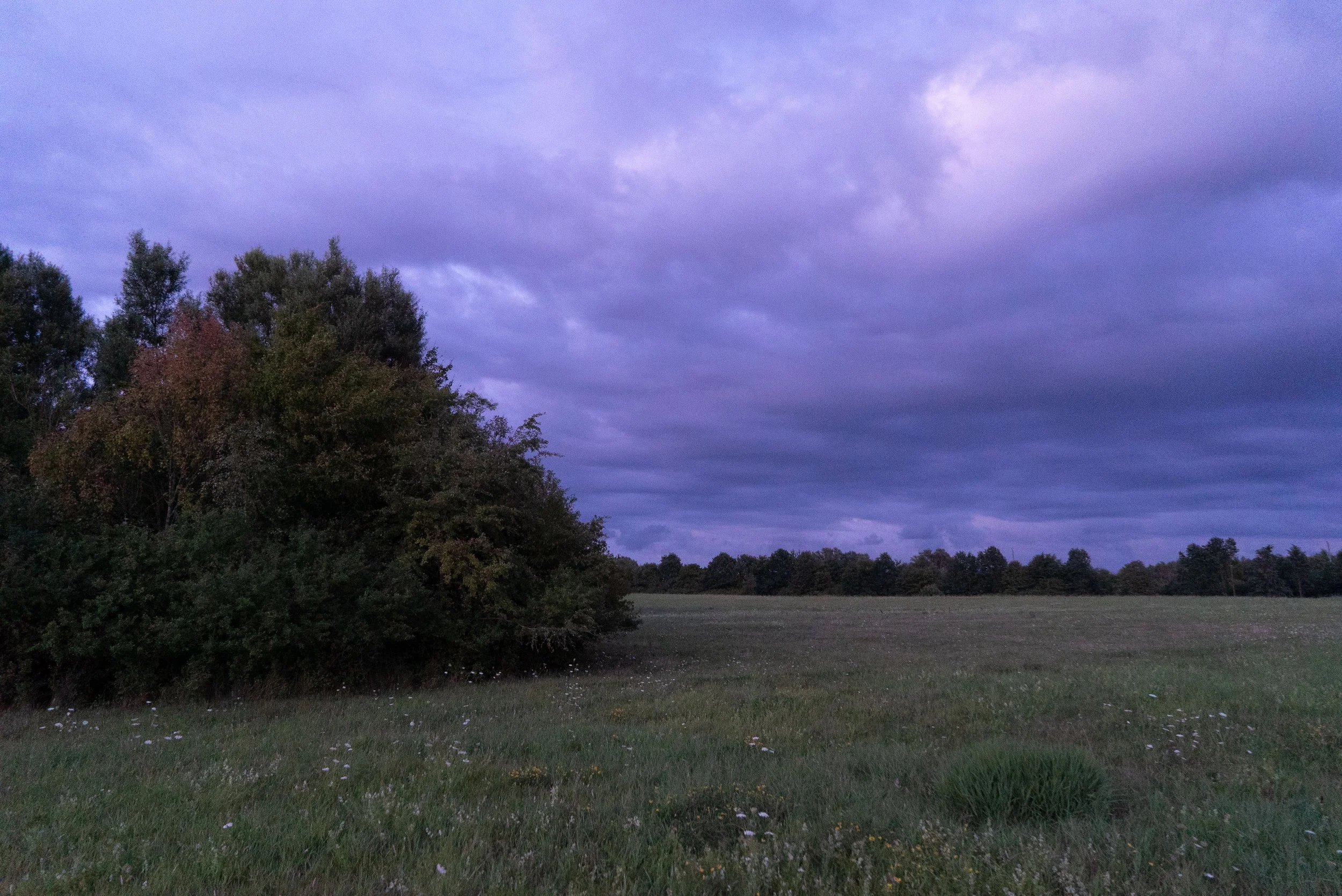 Mit Einbruch der Dunkelheit mache ich mich auf den Weg in Richtung des Viereggenhöfer Teiches und die angrenzenden Wiesen im Süden von Wismar. Am Himmel hängen dicke Wolken, die teils - von unten angestrahlt - in ein Spektrum aus hellem Pink bis dunklem Blau getönt sind.